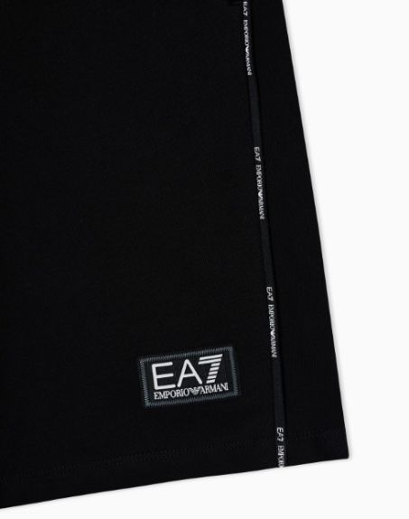 Questi bermuda in misto cotone che presenta vita elastica con coulisse e logo EA7 sulla gamba sinistra. Una proposta comoda e versatile personalizzata dal dettaglio tape logato lungo i bordi delle gambe.