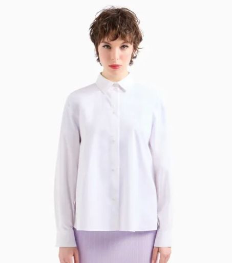 Camicia slim fit donna di AX Armani Exchange realizzata in popeline di cotone caratterizzata dal collo classico, dai bottoni sul fronte e dai polsini con fessino.