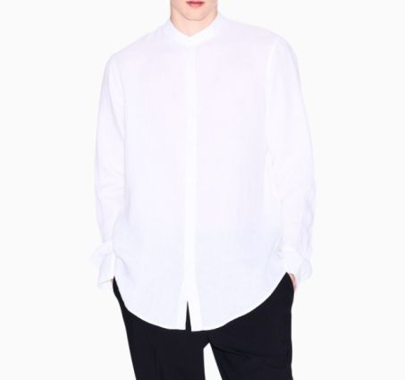 Questa camicia in lino, nella sua purezza cromatica, incarna l'essenza dello stile disinvolto. I dettagli essenziali con il collo classico e i bottoni frontali la rendono un capo versatile