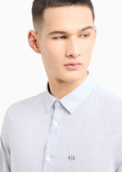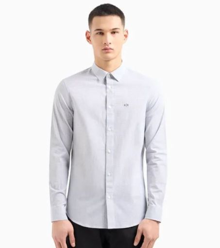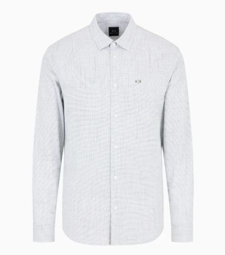 Camicia uomo di AX Armani Exchange vestibilità regular realizzata in popeline di cotone caratterizzata dal collo classico, dalle maniche lunghe con polsino.