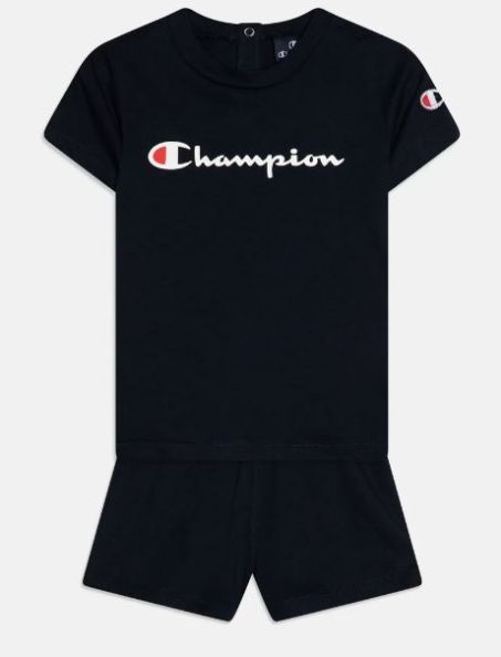 Completo Baby Champion in cotone. Il modello, dalla vestibilità regolare, è costituito da t-shirt manica corta e pantalone corto. Ideale per un uso quotidiano e sportivo.