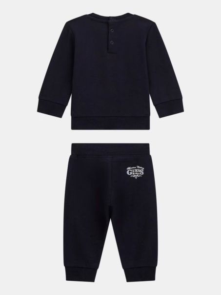 Set 2 pezzi in cotone: maglione girocollo con bottoni sul retro e jogger con vita elastica e coulisse. Comfort e stile casual con logo ricamato sul davanti.