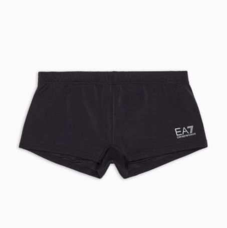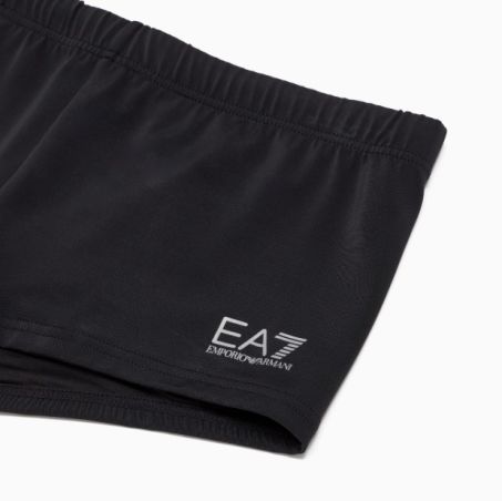 Costume da bagno da uomo, modello parigamba ideale per piscina e spiaggia, impreziosito dal logo EA7 Emporio Armani che segue il profilo della gamba.