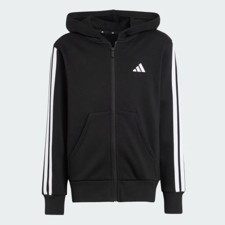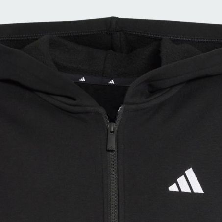 Felpa con cappuccio adidas junior in tessuto felpato morbido con zip integrale e orli a coste. Perfetta per scuola, uscite e giornate dinamiche con stile sportivo e comfort.