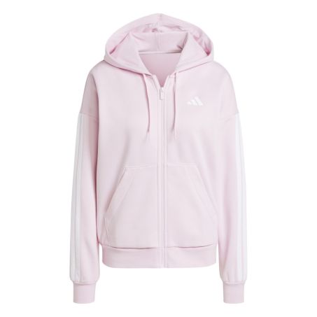 Giacca con cappuccio adidas in felpa spazzolata, con zip intera, cappuccio regolabile e 3 bande classiche. Realizzata con almeno il 70% di materiali riciclati e rinnovabili per comfort e sostenibilità.