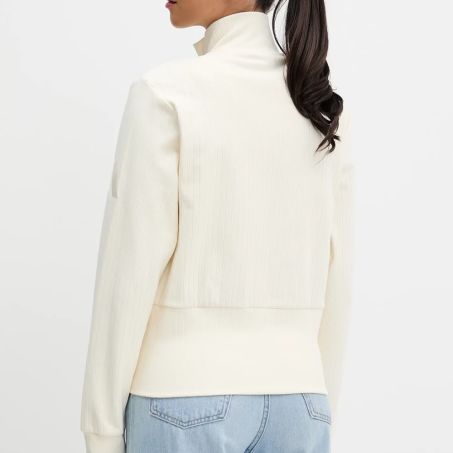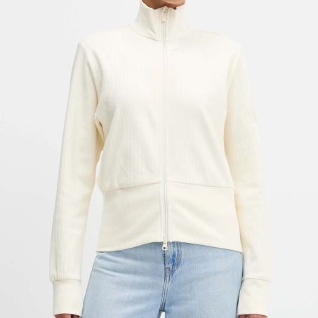 Felpa adidas in maglia fine elasticizzata, realizzata con un tessuto morbido e confortevole ad alta percentuale di cotone, ideale per uno stile casual e sportivo.