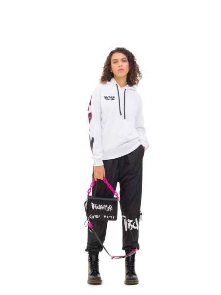 Felpa Donna con Cappuccio DISCLAIMER Stampa Logo 51661 Bianco
