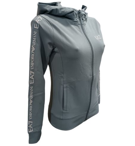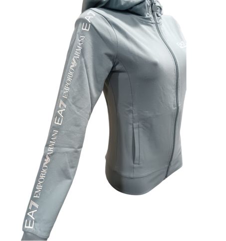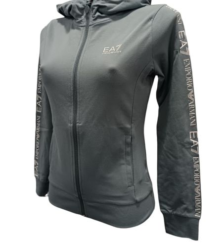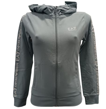Felpa donna Ea7 Emporio Armani con cappuccio e zip. Il modello dalla vestibilità regular viene realizzato in cotone garzato, con fondo e polsi in maglia stretch e tasche laterali.