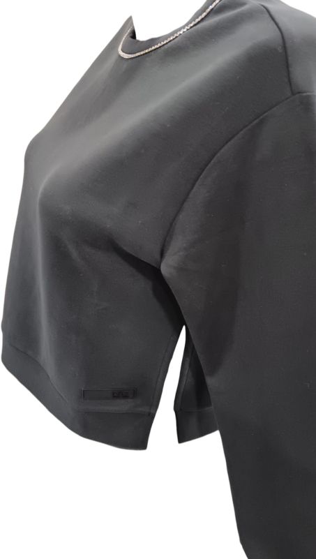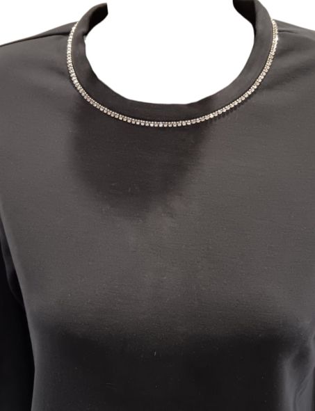 Felpa donna di EA7 Emporio Armani girocollo profilato in strass argentati, realizzata in misto modal stretch.
