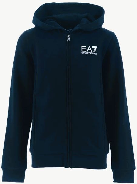 Felpa Bambino con cappuccio EA7 Emporio Armani, linee essenziali e pulite per questa felpa girocollo personalizzata dal logo a contrasto sul petto. Un modello passepartout in cotone, ideale per assicurare comfort sia durante le sessioni di allenamento sia nei momenti di gioco e relax.