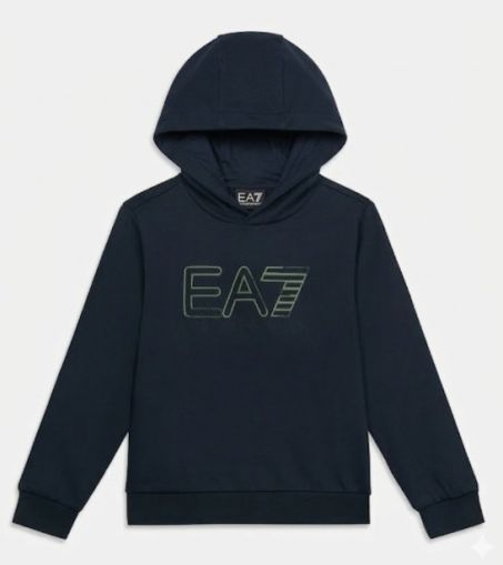 Felpa con cappuccio EA7 personalizzato dal dettaglio del logo centrale. Un capo versatile, adatto allo sport, il tempo libero e la scuola