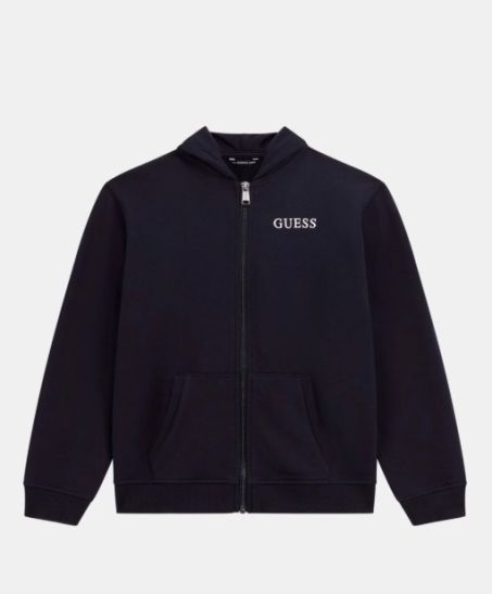 Felpa GUESS Bambino con cappuccio e cerniera lampo. Stampa piccolo sul petto e logo oversize sul retro