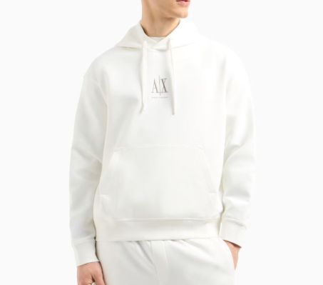 Felpa da uomo in cotone con cappuccio ARMANI AX vestibilità slim e logo Armani Exchange.