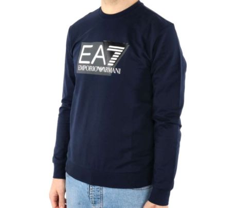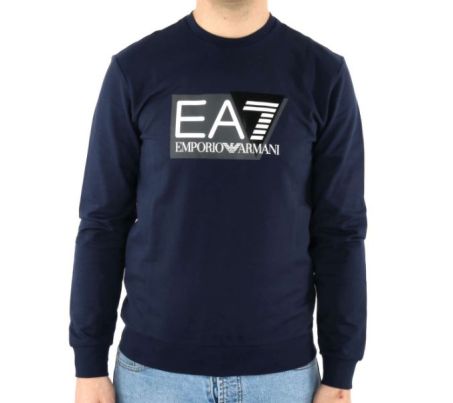 Felpa uomo girocollo di EA7 Emporio Armani realizzata in morbido cotone, dalla vestibilità regular, personalizzata dal maxi logo EA7 stampato a contrasto sul petto.