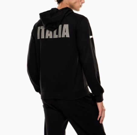 Felpa con cappuccio cotone con stampa tricolore sul retro con maxi scritta "ITALIA". Un modello che unisce comodità e stile per assicurarti comfort sia durante gli allenamenti sia nei momenti di relax.