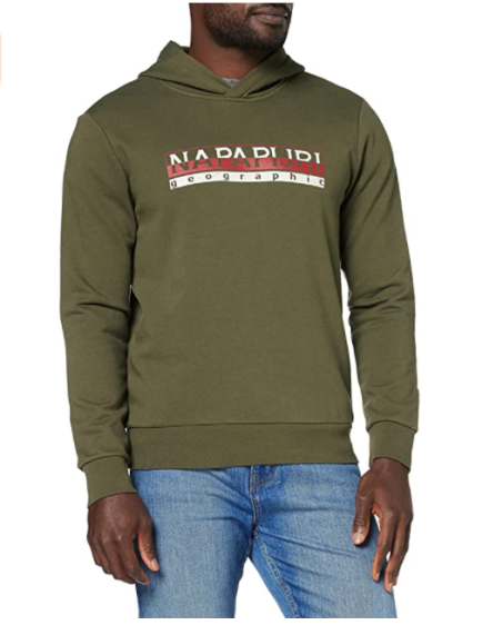 Felpa uomo di NAPAPIJRI Beris h con cappuccio, stampa e bordi a coste la rendono la compagna ideale per le giornate più fredde.