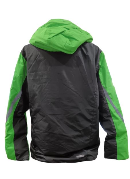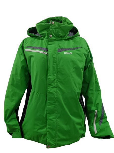Giacca uomo Brugi sci in poliestere, chiusura a zip, cappuccio staccabile regolabile, tasche con cerniera, taschino sulla manica sinistra, tasca interna parte sinistra chiusa con cerniera.