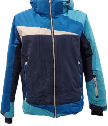 Giacca uomo Brugi sci in poliestere, chiusura a zip, cappuccio staccabile regolabile, tasche con cerniera, taschino sulla manica sinistra, tasca interna parte sinistra chiusa con cerniera.