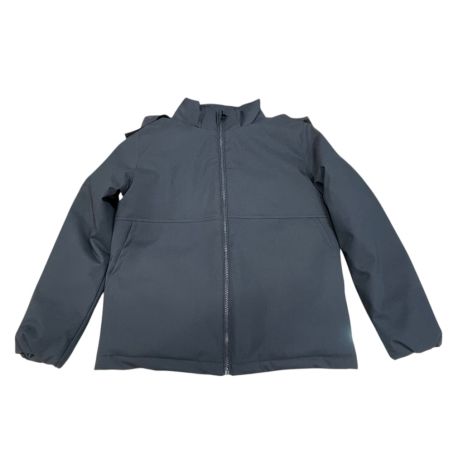 Giaccone Ciesse Piumini Baloo Boy in softshell tecnico, antivento, traspirante e idrorepellente, con cappuccio rimovibile, imbottitura termica, tasche a filo e logo gommato.