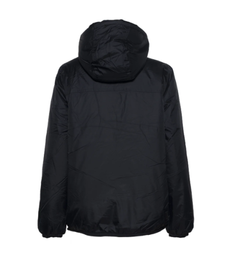 Realizzata in nylon ripstop impermeabile e antivento, si caratterizza per l'imbottitura in ovatta dal peso medio e il rivestimento interno in finta pelliccia solo su corpo e cappuccio per garantire calore senza ingombrare. La chiusura con zip è arricchita dal distintivo tape K-Way a righe multicolor.