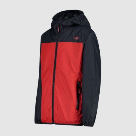 Giacca antipioggia Junior CMP CAMPAGNOLO realizzata in poliestere garantendo massima protezione da vento e pioggia. Il capo è dotato di tasche laterali con zip, elastico sul fondo e cappuccio fisso.
