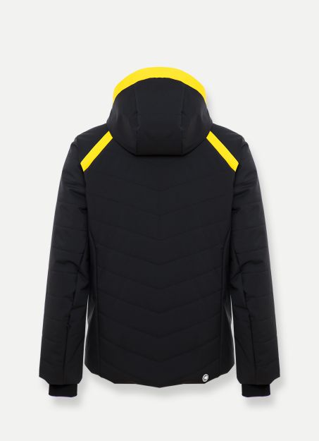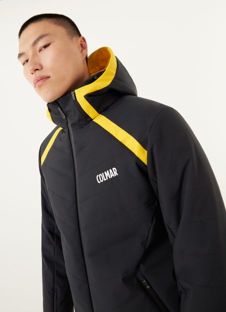 Giacca da sci uomo di Colmar modello Kandahar caratterizzata da trapuntature geometriche alternate a parti lisce, tessuto stretch laminato, impermeabile (15.000 mm) e traspirante (15.000 gr/m2/24).