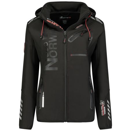 Giacca softshell donna di GEOGRAPHICAL NORWAY modello Reine, cappuccio removibile, idrorepellente traspirante e termico, tasche con cerniera.