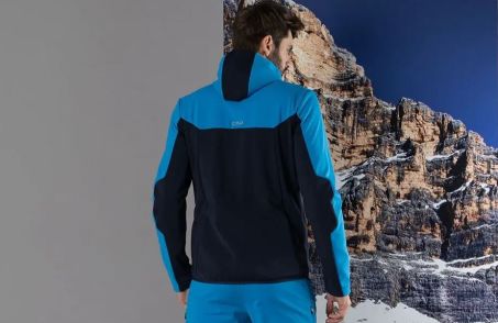 Giacca in softshell di CMP CAMPAGNOLO con laminato termico Clima Protect e trattamento water repellent (PFC free) idrorepellente WP 7.000 e traspirante MVP 3.000.