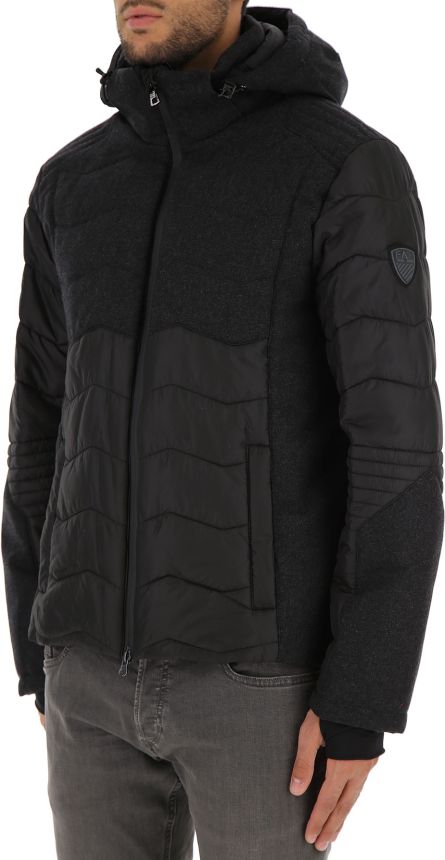 Giubbotto EA7 da uomo Emporio Armani misto panno di lana da indossare ogni giorno. Elasticizzato nei punti collo, maniche e vita. Ideale per le stagioni autunnali e l'inverno non troppo intenso. Tessuto Bicomposto. Cappuccio amovibile.