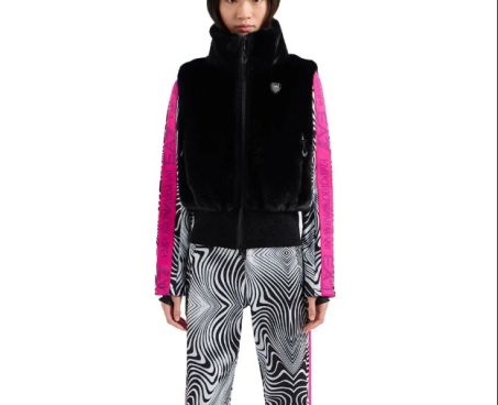 Particolare gilet da donna EA7 realizzato in tessuto effetto pelliccia. Realizzato con materiali di alta qualità con chiusura in zip e logo EA7 sulla parte frontale del capo