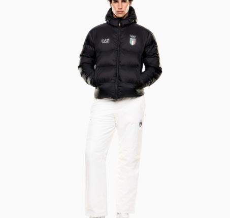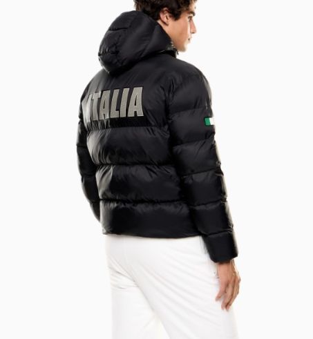 Giacca piumino imbottita realizzata in tessuto ripstop, con maxi scritta sulla schiena "ITALIA" e i loghi istituzionali sulla parte frontale. Un capo pensato per il tempo libero e perfetto per l'aprés-ski