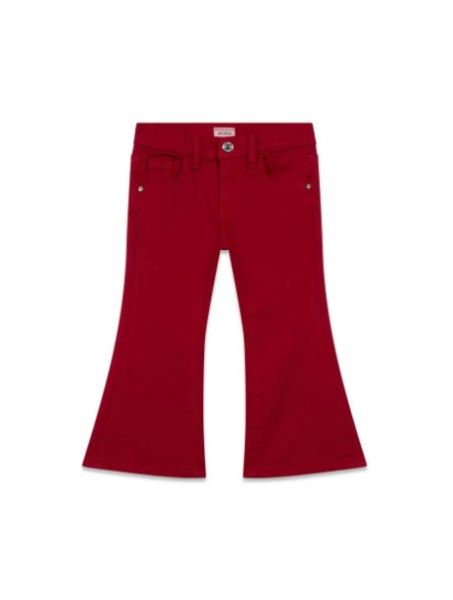 Jeans bimba Guess in cotone, modello gamba svasata di colore rosso con tasche e logo