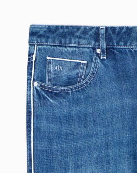 Jeans AX lavaggio mid-blue che esalta la consistenza del denim rigido. La vestibilità ampia offre libertà di movimento e un'attitude disinvolta, perfetta per chi cerca un'eleganza senza sforzo.
