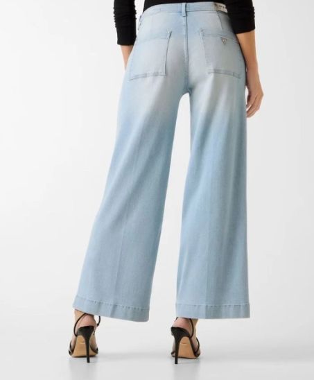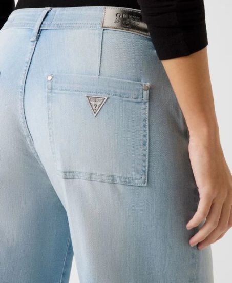 Jeans donna GUESS wide leg lavaggio chiaro e tasche a filo, un capo indispensabile per una donna che vuole essere alla moda e non passare inosservata