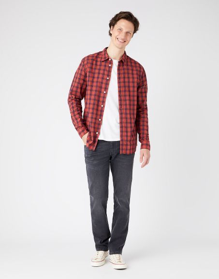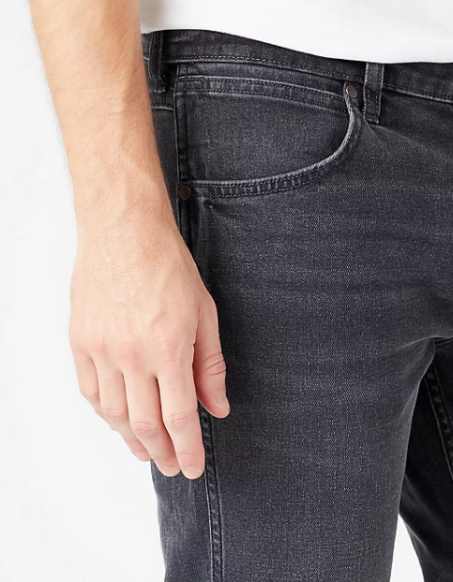 Un modello moderno di Jeans WRANGLER, gamba attillata, cerniera lampo, tonalità denim con cuciture in tinta e leggermente smerigliate.