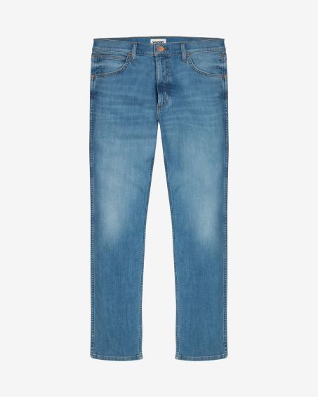 Un modello moderno di Jeans WRANGLER, gamba attillata, cerniera lampo, tonalità denim con cuciture in tinta e leggermente smerigliate.