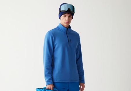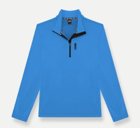 Maglia termica di Colmar da uomo mezza zip realizzata in pile stretch liscio all'esterno, tessuto strech e logo Colmar.