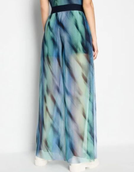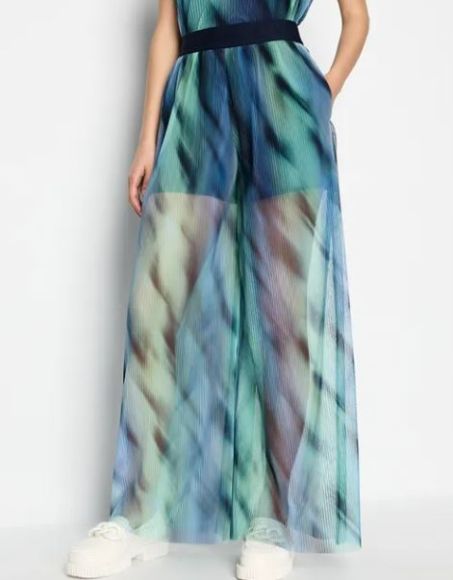 Pantaloni donna di AX Armani Exchange realizzati in tulle semitrasparente regalano un originale effetto non vedo, tessuto plissettato cade morbido sul corpo. Il modello presenta elastico in vita.