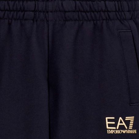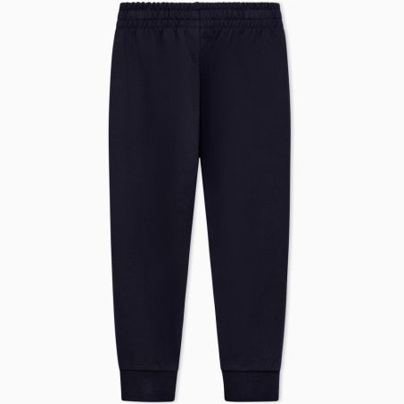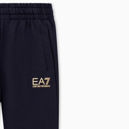 Jogger in cotone morbido, vestibilità regular, elastico e coulisse, tasche a filetto, fondo in maglia stretch, logo EA7 a contrasto. Comfort ideale per scuola e tempo libero.