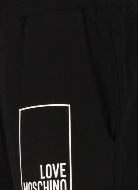 Pantalone sportivo donna Love Moschino, realizzato in cotone, garantisce freschezza, stile e comodità. Logo in squadro sulla gamba sinistra, vita regolabile con coulisse, polsini con zip e tasche laterali.