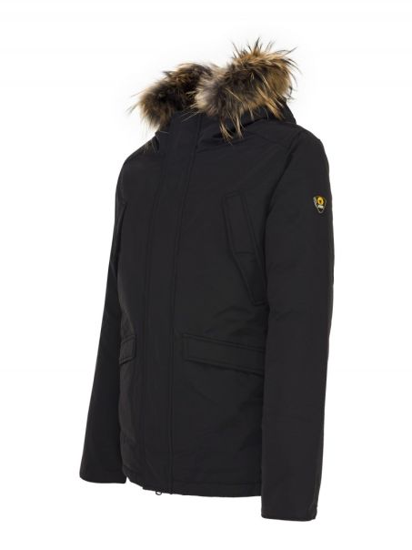 Giacca classica da uomo parka, imbottito in vera piuma con cappuccio dotato di pelliccia. Prodotto con spallotti rinforzati e interni in contrasto, è provvisto di 4 tasche esterne e tasche interne con inserti in rete. La sua vestibilità è regolare, lunghezza al primo fianco. Perfetto per la stagione invernale non teme il freddo.