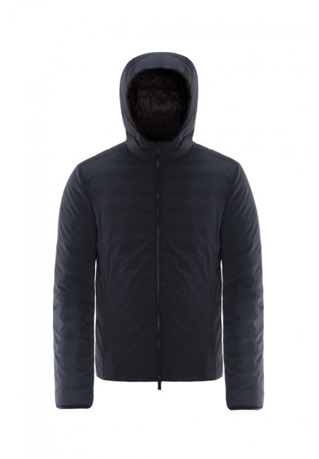 Piumino Uomo realizzato in nylon canvas e imbottito in vera piuma indossabile sia dal lato interno che da quello esterno.