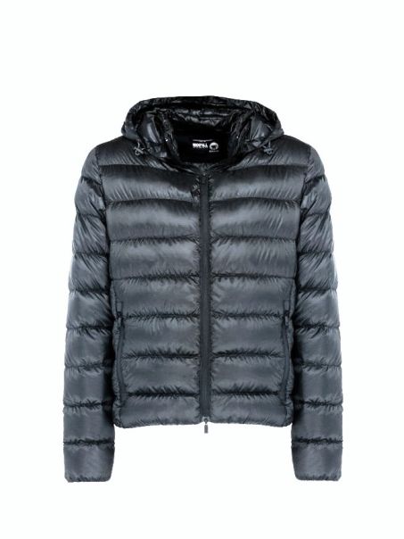 Piumino con cappuccio in vera piuma d’oca 1000 Fill Power super leggera. Full zip doppio cursore e dettagli personalizzati. Tasca interna con lycra personalizzata ed etichetta stampata riflettente.