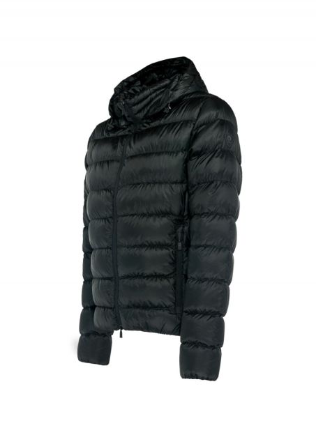 Piumino con cappuccio in vera piuma d’oca 1000 Fill Power super leggera. Full zip doppio cursore e dettagli personalizzati. Tasca interna con lycra personalizzata ed etichetta stampata riflettente.