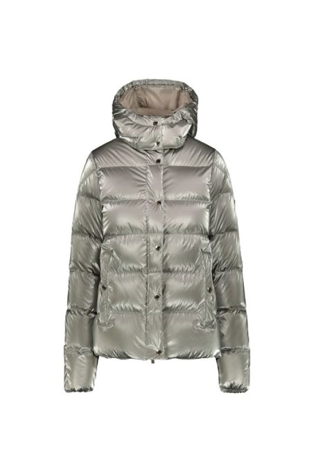 Piumino CIESSE PIUMINI modello Afra con cappuccio staccabile realizzato in nylon Wet, imbottito in vera piuma certificata 90/10.