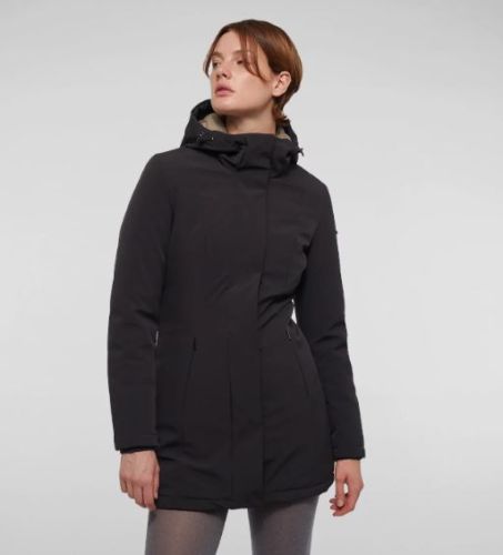 Giacca di RefrigiWear modello Long Lady Tech 1 Jacket esterno in soft-shell tecnico con trattamento idrorepellente ed antivento, imbottitura termica 100% animal-free che assicura una traspirabilità eccellente ed una tenuta termica formidabile.