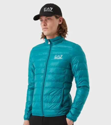 Piumino EA7 Emporio Armani con imbottitura in piuma d'anatra, chiusura full-zip. Stampa del logo EA7 sul petto, due tasche esterne e due interne. Sacchettino porta piumino incluso.