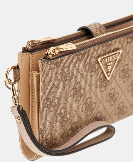 Portafoglio Guess da donna in ecopelle con cerniera lampo e scritta con logo metallo frontale