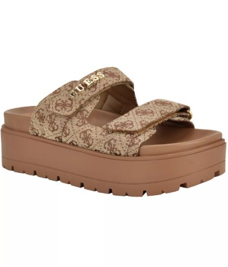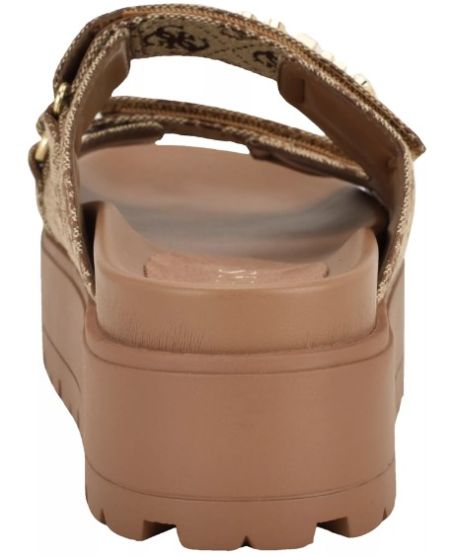 Sandali con plateau Guess che combinano comfort e look, perfette per aggiungere un tocco audace e raffinato al tuo stile. Dotate di due fasce regolabili sul piede con un dettaglio del logo Guess in metallo.