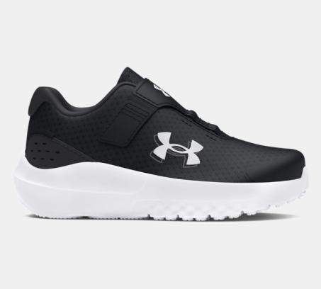 Scarpe bambino Under Armour BINF Surge 4 AC, scarpe da corsa con ammortizzazione EVA, tomaia in mesh traspirante, chiusura a strappo, suola in gomma resistente e design leggero per comfort e agilità.